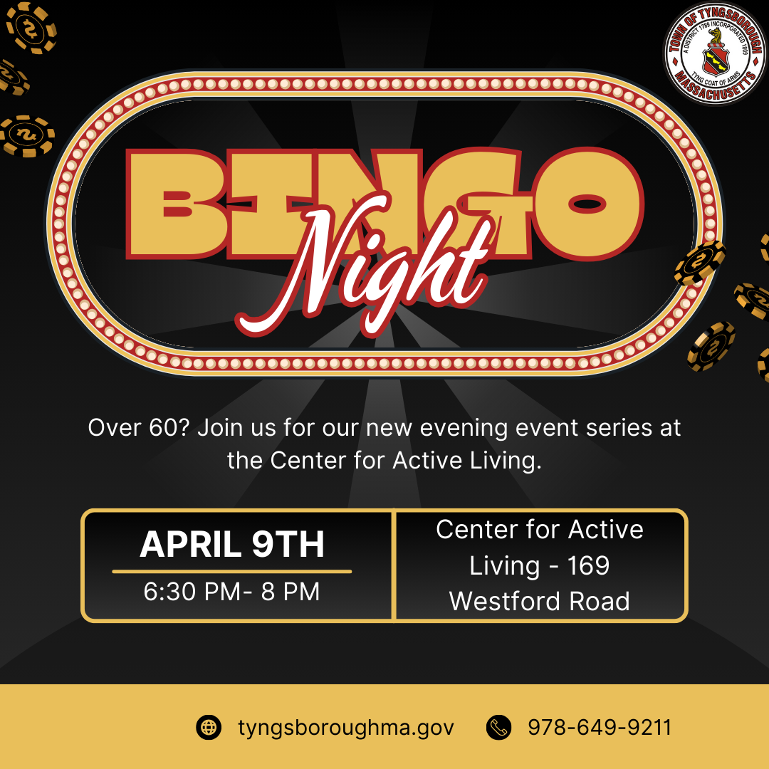 The Council on Aging is thrilled to announce that based on positive feedback from the first one, Bngo Night will return on April 9th at 6:30 PM at the Center for Active Living & continue every other week through May!