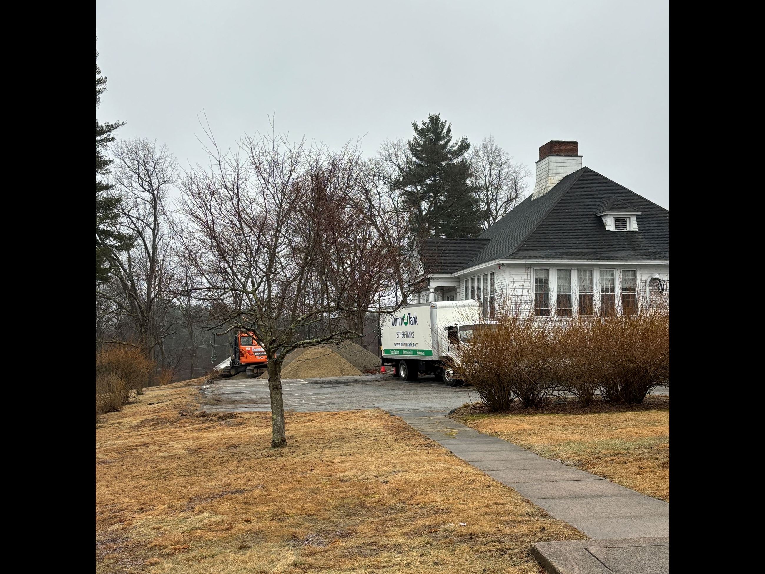 The hazardous abatement project at the Winslow School kicked off in earnest on Monday, March 4th with the removal of two underground storage tanks which previously stored oil for the buildings original boiler. This project is funded by two separate Town Meeting appropriations and design of the abatement began this fall. Over the course of the fall and the winter, the Town and its environmental consulting firm have worked diligently with the Massachusetts Department of Environmental Protection to review the project, submit required submittals, and get the approvals necessary to commence work. The work under this contract will include the removal of two underground storage tanks (USTs) and the removal of asbestos containing materials which is widespread throughout the building, as well as limited lead remediation.